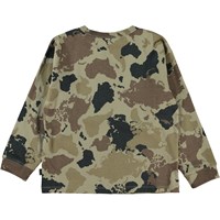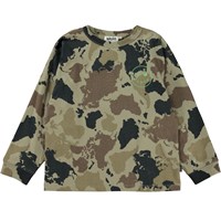 Rube är en grön och brun långärmad t-shirt med de olika kontinenterna och en smiley på bröstet med texten "I love earth". T-shirten har ribbkant vid hals och handleder.