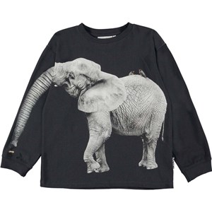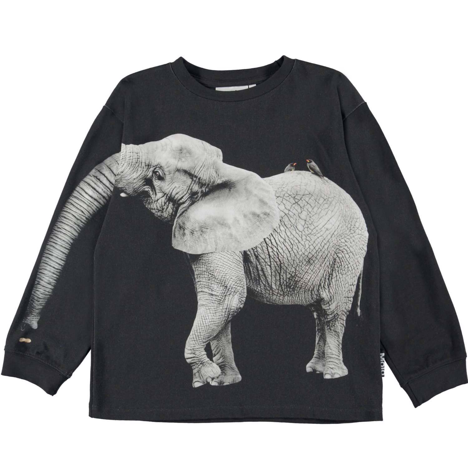 Rube är en svart sweatshirt med en elefant framtill. En elefant med snabel lika lång som din arm, då snabeln går ner längs ena armen.