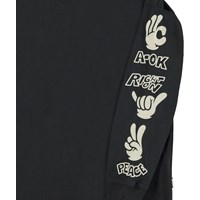 Rube är en svart långärmad tröja med olika handtecken ner längs ärmarna.