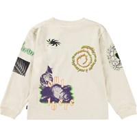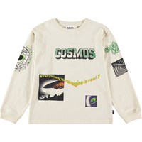 Off-white tröja i ekologisk bomull med långa ärmar, rund hals och ribbad kant vid hals och ärmar. Tröjan har en lös passform med ett multifärgat heltryck inspirerat av element med referenser till yttre rymden och idén om vad man kan hitta där ute.
