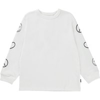 Rube är en vit långärmad t-shirt med peacetcken, smileys och hjärtan ner längs ärmarna. Tröjan har ribbkant vid hals och ärmslut.