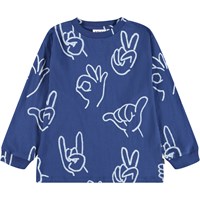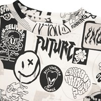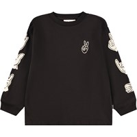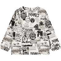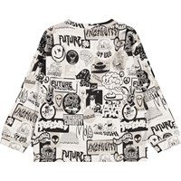 Off-white långärmad tröja i ekologisk bomull med ribbad halsringning och ärmar. Tröjan har en lös passform med svarta, vita och beige klistermärken med roliga och söta uttalanden om livet och Molos kollektion.