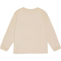 Off-white tröja i ekologisk bomull med långa ärmar, rund hals och ribbad kant vid hals och ärmslut. Den har en lös passform och en tryckt design på framsidan. Trycket visar tre olika bollar från tre olika sporter, med texten "World Play" ovanför dem.