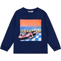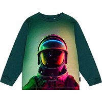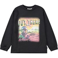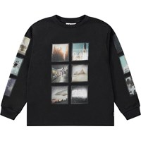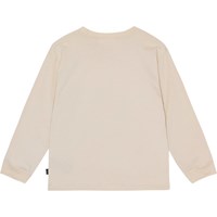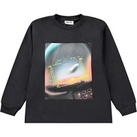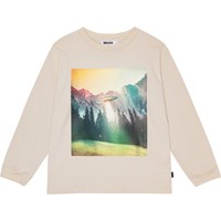 Off-white tröja i ekologisk bomull med långa ärmar, rund hals och ribbade muddar. Tröjan har en lös passform och en tryckt design på framsidan. Trycket visar en UFO som landar på en glänta i skogen, med berg i bakgrunden. Färgerna är som en polaroidbild och ger en nostalgisk och unik dimension.