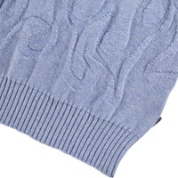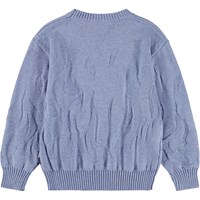 Ljusblå stickad tröja i en blandning av bomull och ull. Tröjan är stickad med ett flammönster. Den har en rund halsringning med ribbade kanter, långa ärmar och ribbade kanter runt ärmar och midja.