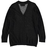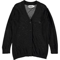 Svartmelerad tunn cardigan i ull med knappar framtill samt ribb i ärmslut och nederkant.