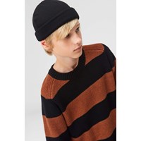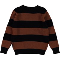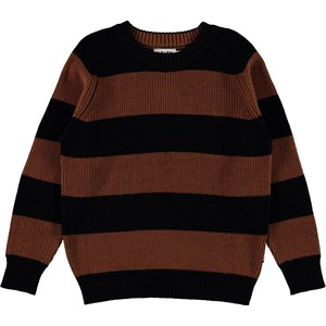 Bosse är svart och brun randig bomullsstickad tröja. Denna Molo-produkt är gjord av ekologisk bomull.