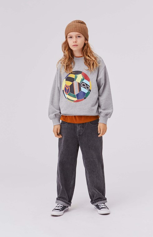 Magni är en gråmelerad sweatshirt med en fotboll i fina färger.