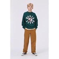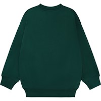 Mörkgrön sweatshirt med stort broderi framtill. Det vita och vinröda broderiet föreställer ett jordklot och förmedlar budskapet om "World Peace". Denna sweatshirt är tillverkad i 100% bomull, har rund hals med ribbkant, ribbkant vid höfter och ärmar och en lös passform. Matcha ä