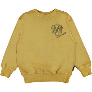 Mattis är en guldig sweatshirt med trycket 'Brain teaser' på både fram- och baksida.