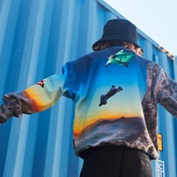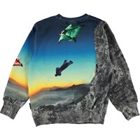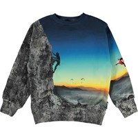 Mattis är snygg tröja i ekologisk bomull med ett mönster av olika extremsportsutövare. Tröjan är en del av Molo’s samarbete med konsthall Aarhus till utställningen Go Extreme.