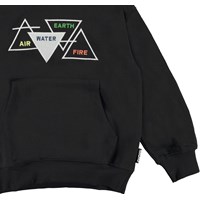 Matt är en svart huvtröja med ett broderi av de fyra elementen på bröstet.