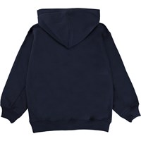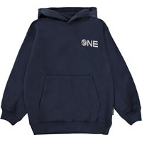 Maxx är en mörkblå hoodie med känguruficka på magen och texten "One" på bröstet. Maxx har ribbkant vid handled och nertill.