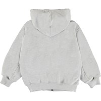 Mazzy är en ljusgrå hoodie med mjukt och varmt foder. Luvtröjan har dragkedja och känguruficka framtill.