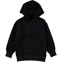 Meqo är en svart huvtröja i bomull med känguru ficka fram.