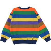 Mexon är en multifärgad sweatshirt med breda ränder i många olika färger. Mexon har ribbkant vid hals, ärmslut och höft.