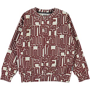 “Find your own way” är skrivet på det röda labyrintprintet på sweatshirten Mik. Se om du lyckas ta dig igenom den.