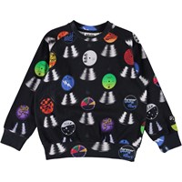 Mike är en svart sweatshirt med tryck av olika musikskivor med Molo's universum. Mike är i 100% bomull.