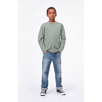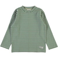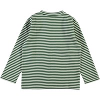 Mikhail är en grön och vit randig sweatshirt.
