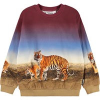 Sweatshirt i mjuk, ekologisk bomull med ribbade kanter vid halsen, ärmarna och nederkanten. Sweatshirten har en lös och avslappnad passform med tigermönster som går runt hela tröjan.