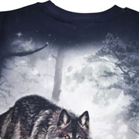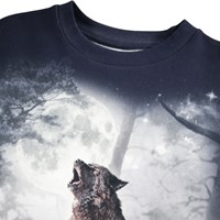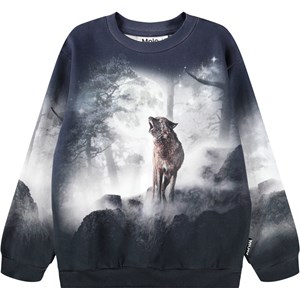 Mörkblå sweatshirt i mjuk ekologisk bomull med ribbade kanter runt halsen, ärmsluten och midjan. Sweatshirten har en lös passform med en vargmönster som sträcker sig hela vägen runt.