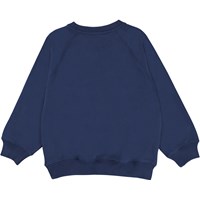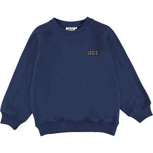 Mir är en blå sweatshirt med Molo logga på ena bröstet. Kombinera tröjan med matchande sweatpants.