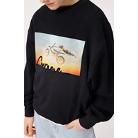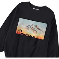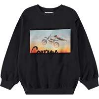 Mjuk sweatshirt i ekologisk bomull med ribbade kanter vid halsen, ärmsluten och nederkanten. Sweatshirten har en lös passform med ett främre tryck av en flygande motocrossförare i solens glans och texten 'Courage'.