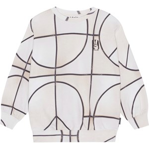 Ekologisk sweatshirt med cremefärgat och svart basketmönster. Mönstret är gjort från strukturen och linjerna på en basketboll - några av linjerna är ändrade så att de bildar ett peacetecken. Tröjan har en lös passform, rund hals med ribbkant och ribbkant vid handleder och höfter.