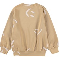 Beige sweatshirt i mjuk, ekologisk bomull med ribbade kanter vid halsen, ärmarna och nederkanten. Sweatshirten har en lös och avslappnad passform med smileys.