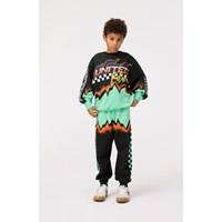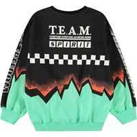 Svart och grön sweatshirt i mjuk ekologisk bomull med ribbade kanter vid halsen, ärmar och nederkant. Sweatshirten har en lös passform med ett coolt mönster inspirerat av motocrossvärlden.