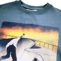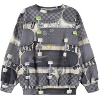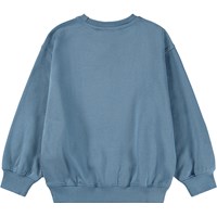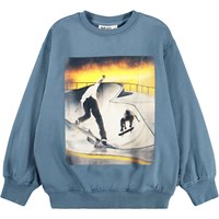 Blå sweatshirt i mjuk ekologisk bomull med ett skateboardmönster. Sweatshirten har ribbade kanter runt halsen, ärmar och midja, samt en lös passform.