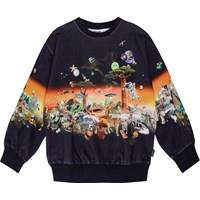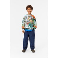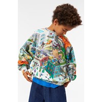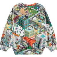Multifärgad sweatshirt i ekologisk bomull med en borstad insida, vilket gör den mjuk och varm att ha på. Sweatshirten har en lös passform, långa ärmar, en rund hals med ribbad kant och en nostalgisk och humoristisk heltrycksdesign inspirerad av tidiga 80- och 90-tals arkad-datorgrafik.