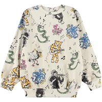 Beige sweatshirt i mjuk, ekologisk bomull med ribbade kanter vid hals, ärmar och nederkant. Sweatshirten har en lös och avslappnad passform med sjungande djur.