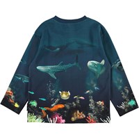 Dyk ner under havsytan och se vad som gömmer sig i trycket på tröjan Mountoo. Det finns flera olika fiskar och kanske till och med en haj.
