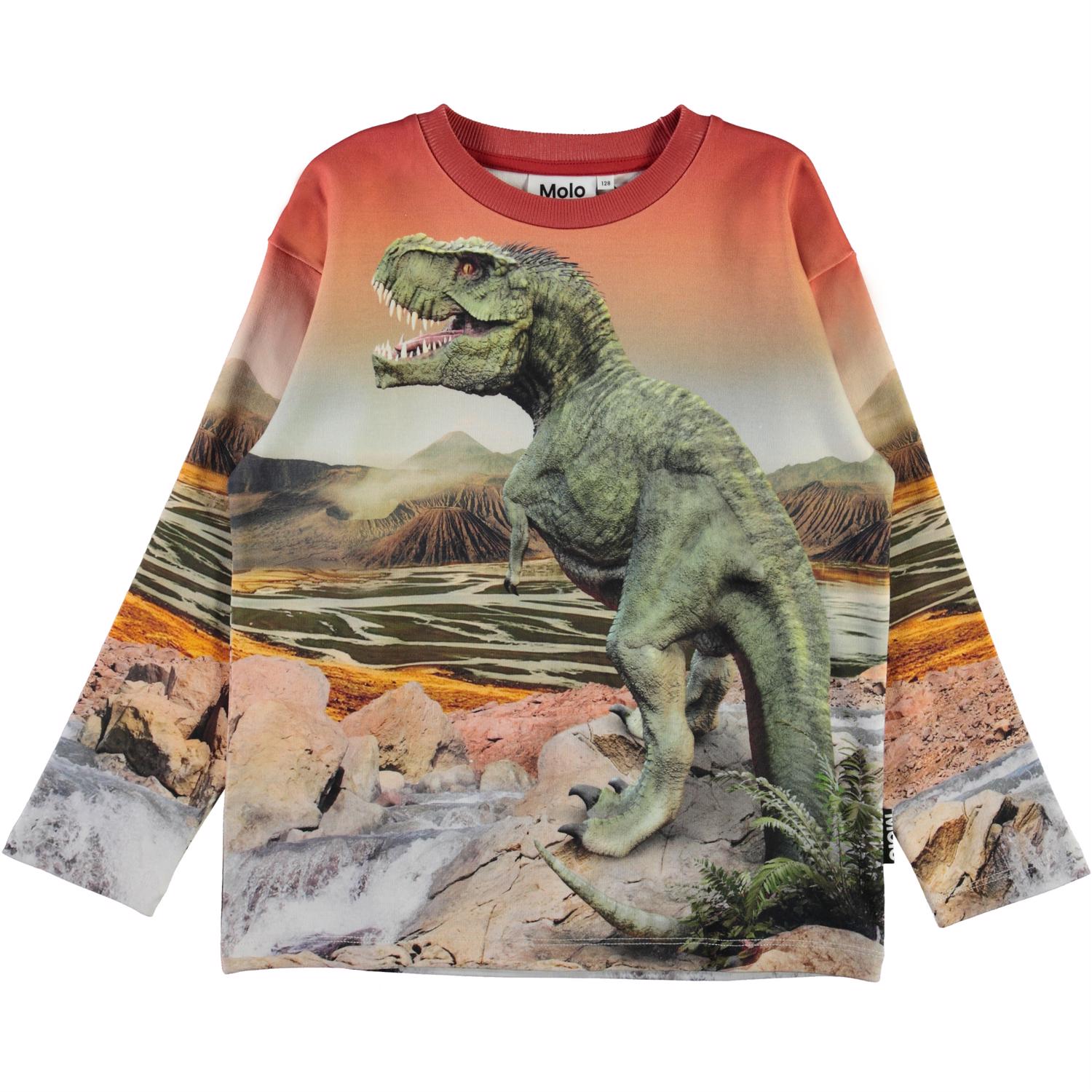 Mountoo är en tröja i fina ljusblå och jordnära färger med dinosaurier på.