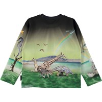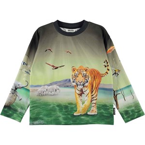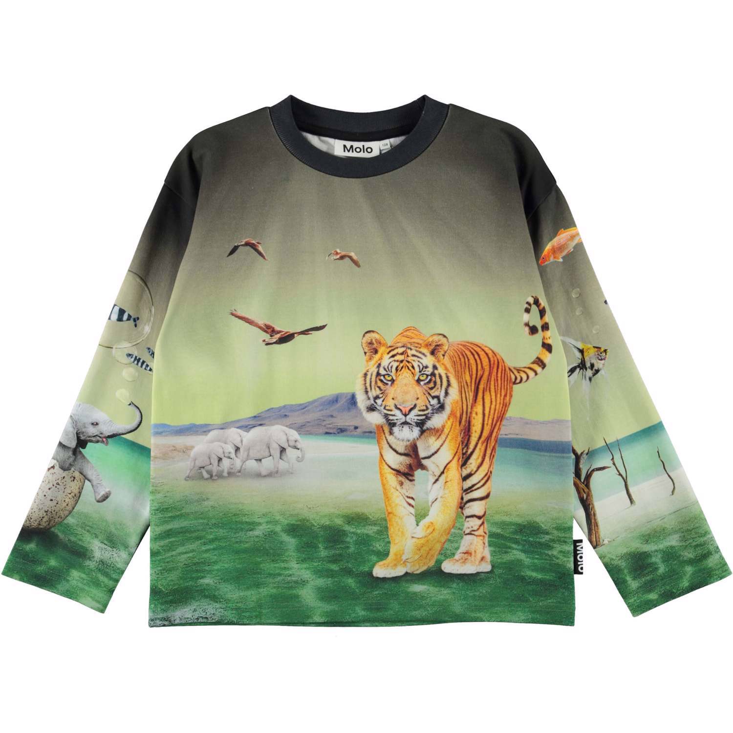 På tröjan Mountoo i mönstret "Imaginary World" är naturen upp och ner, med flygande fisk och sjöhästar, och elefanter som kommer ut ur ägg. Mountoo har ribbkant i halsen och är lös vid ärmslut och höfter.