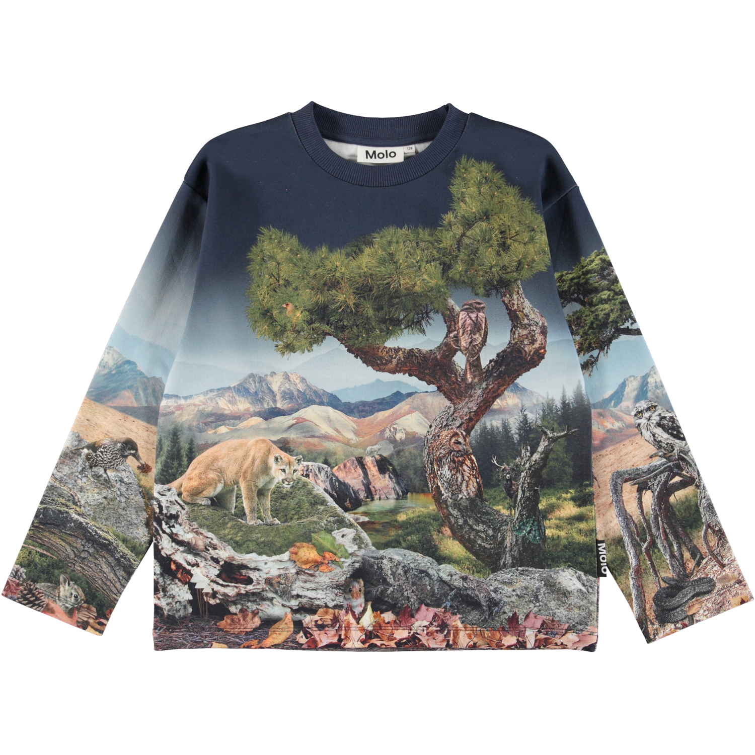 Mountoo är en långärmad t-shirt med fin natur, om man tittar riktigt noga hittar man olika djur, som nästan går i ett med naturens färger.