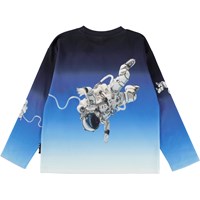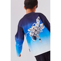 Mountoo är en blå långärmad t-shirt med flygande astronaut på fram- och baksida samt ärmar.