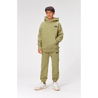 Moz är en gröngrå sweatshirt hoodie med känguruficka på magen och svart logopatch på vänster sida. Moz har ribbkant vid ärmslut och höfter.