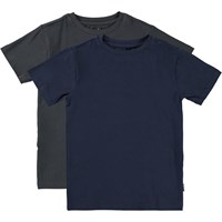 2-pack med t-shirts i bomull. Den ena är blå och den andra grå.