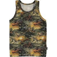 2-pack av våra populära Jayden undertröjor. Denna version innehåller en svart och en med dinosauriemönster. Här ses många olika dinosaurier vandra runt bland sanddynorna i morgondisen. Över dem ses månen som påminner dem att de är en del av något större. Tröjorna är tillverkade i 100% ekologisk bomull. Matcha eventuellt undertröjorna med vårt Justin 2-pack som innehåller matchande kalsonger.