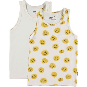 Jayden 2-pack har inte ett utan två linnen - ett i vitt och ett med gult smileysmönster. Molo logon är tryckt i kontrastfärg bak i nacken.
