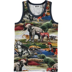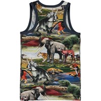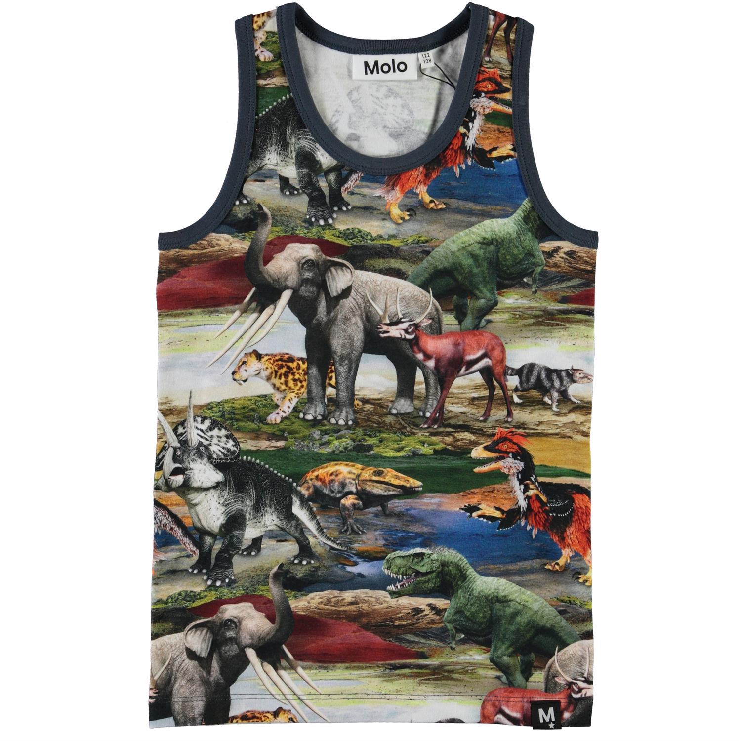 Jim är ett linne med ett tryck av djur i vackra gröna och röda färger.