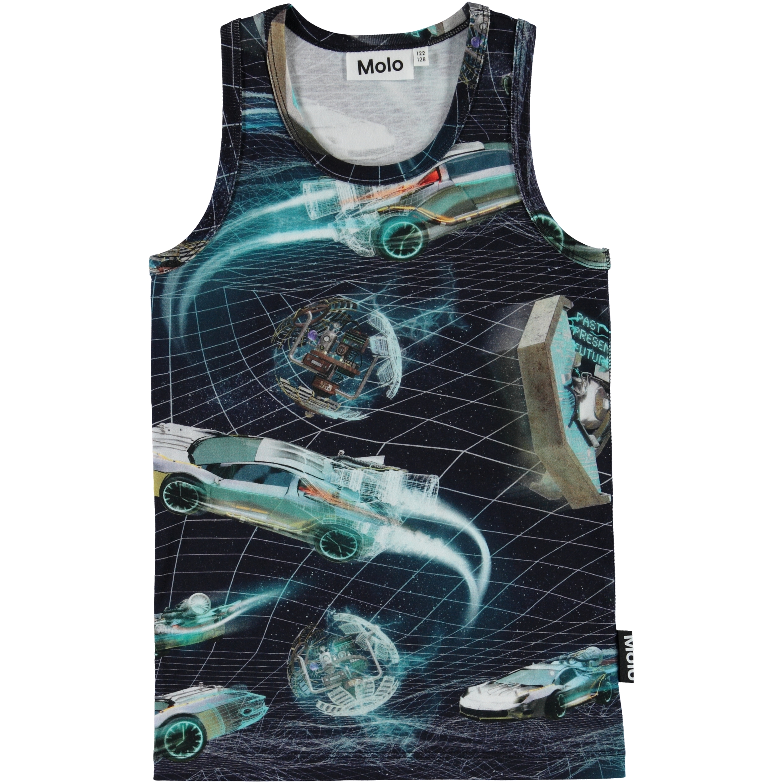 Jim är en blå undertröja med trycket 'Time Machines’. Denna