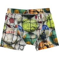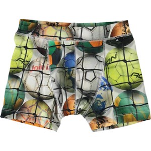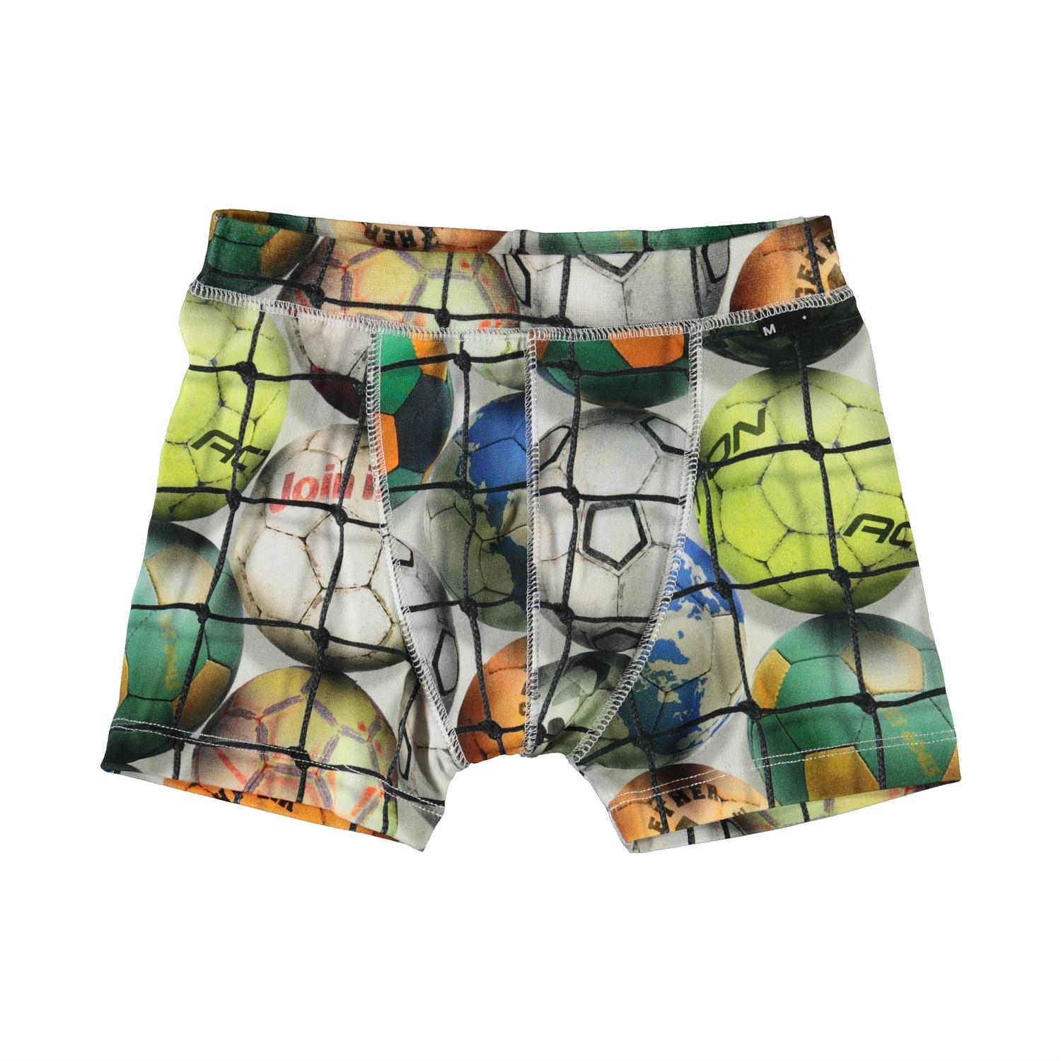 Boxershorts med färgglada fotbollar i ett nät. Bakgrund