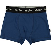 Paket med två par boxershorts i ekologisk bomull. Det ena paret är mörkblå och det andra med jordklotets kontinenter och djur som lever på olika ställen i världen. Boxershorsten har ett brett gummiband i midjan för bra komfort.