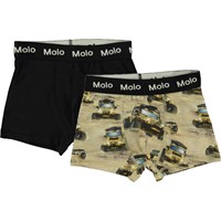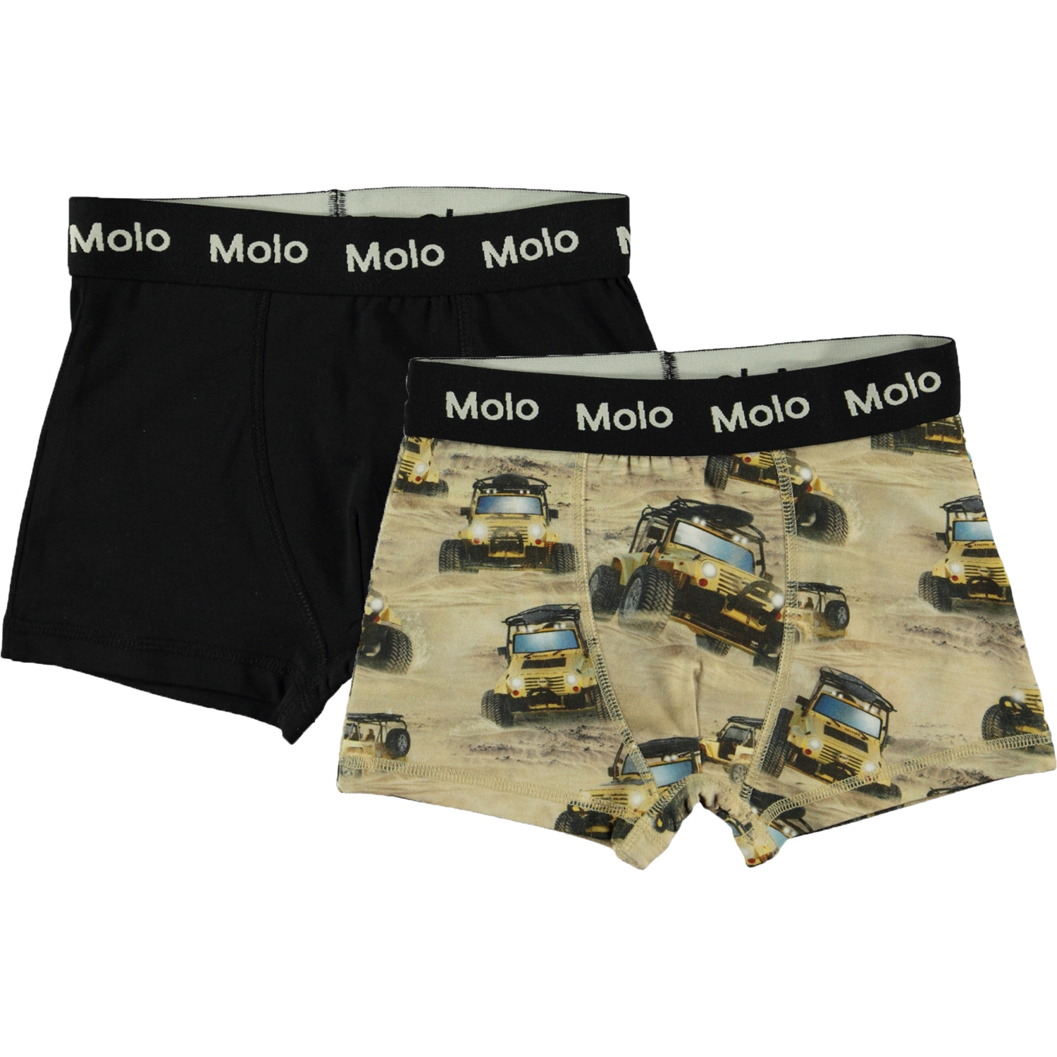 Paket med två par boxershorts i ekologisk bomull. Det ena paret är svart och det andra med jeepar i öknen. Boxershorsten har ett brett gummiband i midjan för bra komfort.