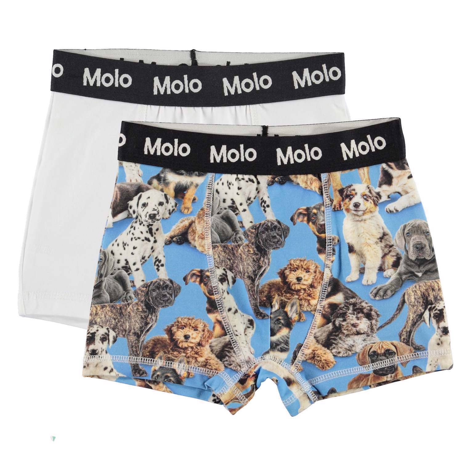 2-pack boxershorts i vit och helmönstrade med de sötaste hundvalparna. Boxershortsen har ett brett gummiband i midjan för bra komfort.
