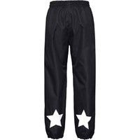 Haven är ett par svart funktionella överdragsbyxor som också kan användas som regnbyxor. Byxorna har gummiband vid benslut och i midjan som kan justeras, samt Molo´s ikoniska stjärnreflex bak på benen. Haven kan användas i alla slags väder då materialet är vind- och vattentätt och andas samt har tejpade sömmar. Denna produkt har en vattenavvisande PFC-fri impregnering (innehåller t.ex. inte PFOS eller PFOA). Vattenpelare: 5.000 mm. Andningsförmåga: 5.000 g/m2/24t.