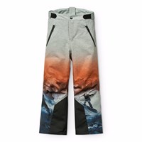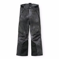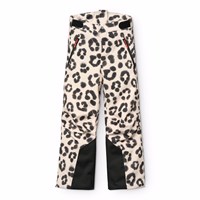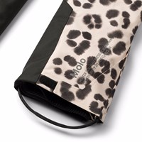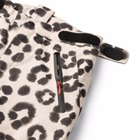 Vind- och vattentäta skidbyxor i ett unikt leopardmönster tillverkade av återvunnen polyester. Skidbyxorna har en tryckknapp och dragkedja, externa justerbara kardborrband, hällor för Molos hängslen (ytterligare tillbehör), justerbara benslut med snölås och extra förstärkning mellan benen. Skidbyxorna har vattentäta fickor och en reflextext på baksidan för att öka synligheten i trafiken. Dessutom är skidbyxorna fodrade med fleece på utsatta områden och vadderade med 3M™ Thinsulate™.